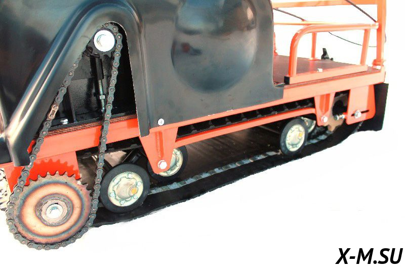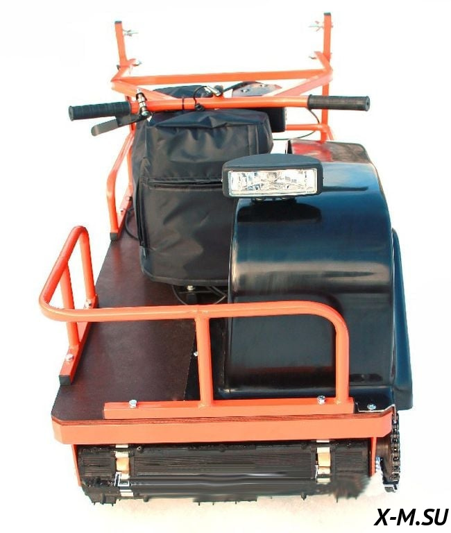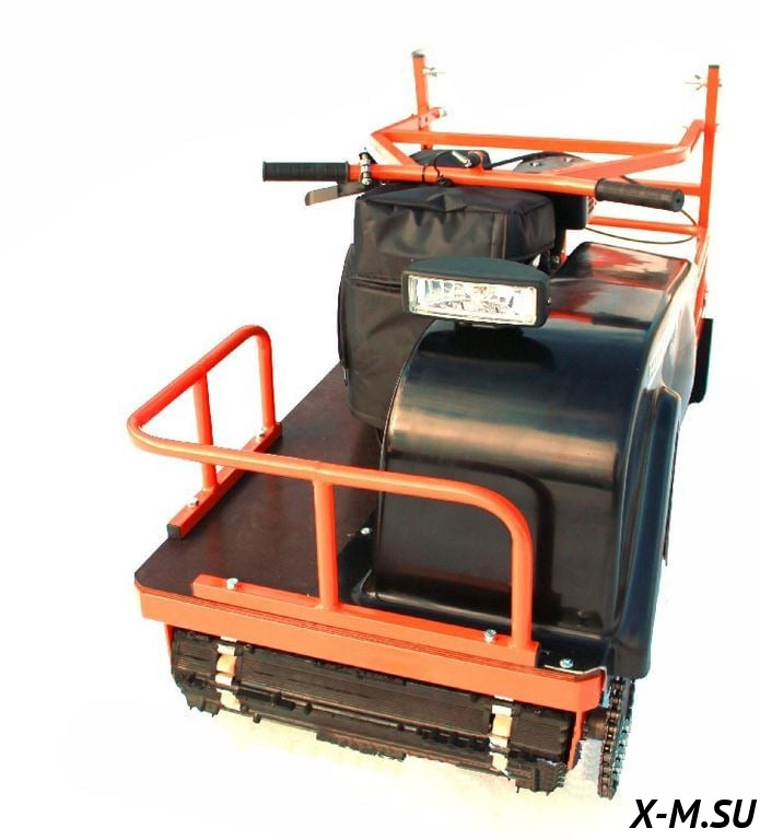 Двигатель: Мощность (л.с.) 8.5 Объём двигателя, куб 270 Трансмиссия Вариатор Тип топлива АИ92 Количество тактов 4 Система привода Передний привод Расход топлива 1,5 л Рама и габариты: ДШВ: 210*60*60 см Вес, кг 115 Грузоподъемность, кг 40 Вес перевозимого груза (в санях), кг 400 Длина гусеницы, мм 1250 Ширина гусеницы, мм 500 Подвеска катковая Фара