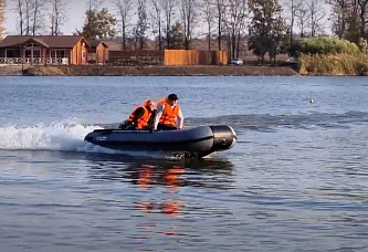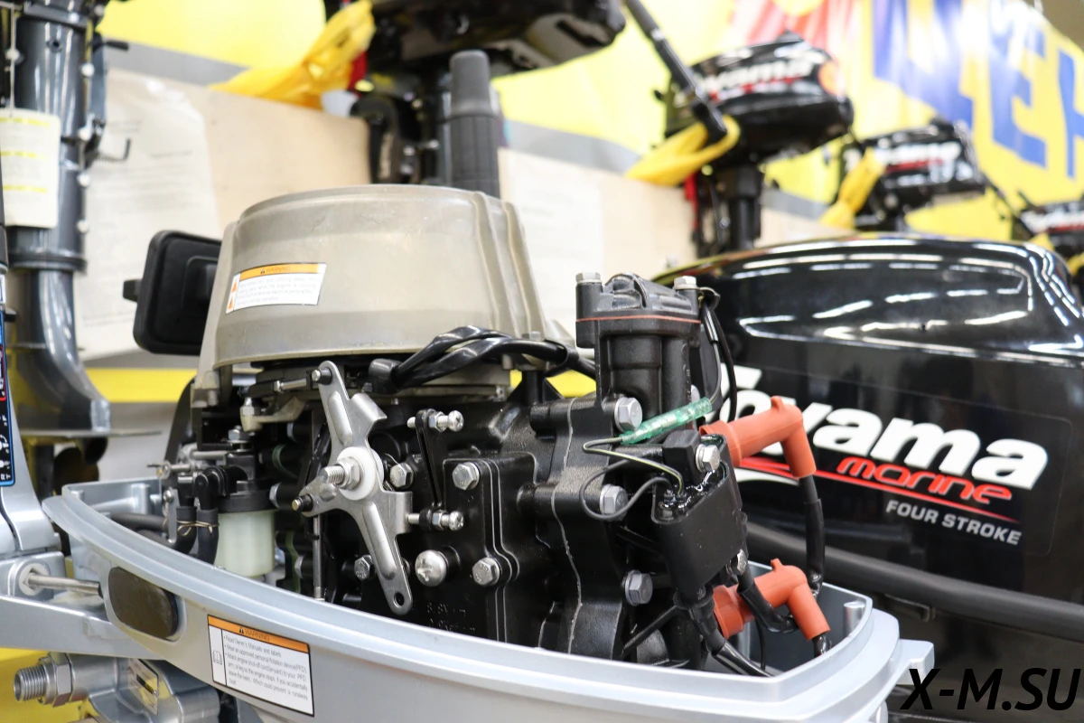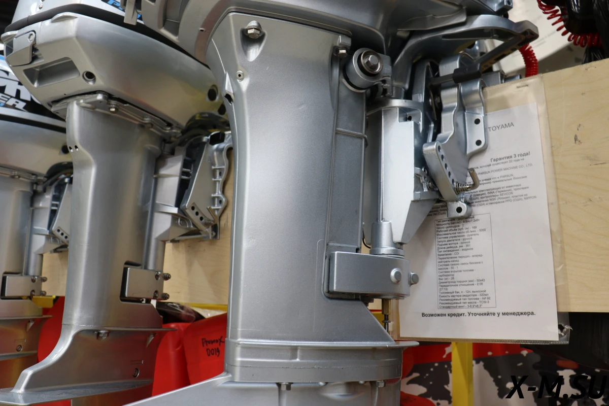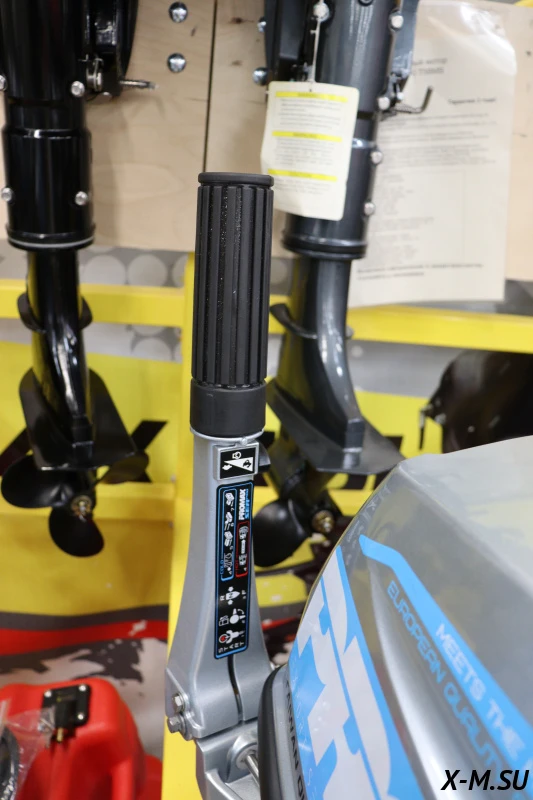 Мощный мотор, наклон двигателя регулируется для обеспечения движения на мелководье, управление румпельное. Имеется аварийное выключение чекой.